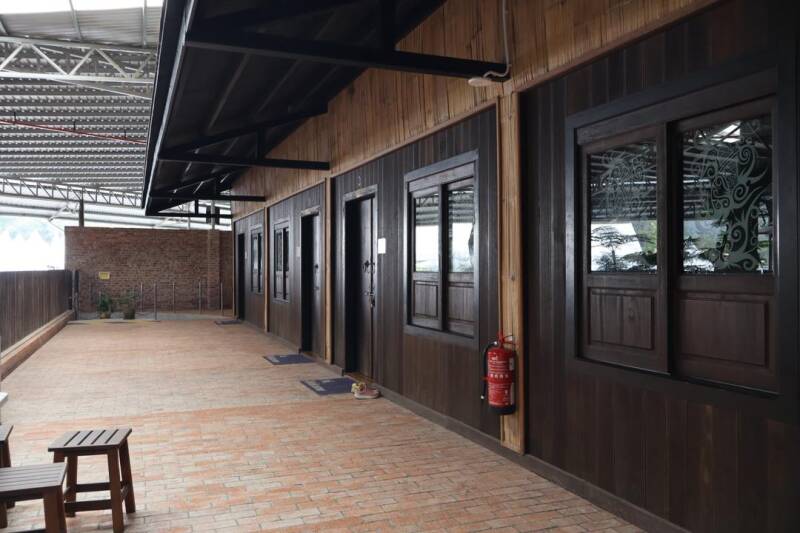 The resort offers three lodging options: the Classic Room (RM 350, 2 pax), the Long House Room (RM 400, 8 pax), and the Modern House (RM 500, 5 pax). Standard check-in is after 3:00 PM and check-out is by 12:00 PM. International guests are subject to a RM 10 nightly tourism tax, while all in-house guests enjoy a discounted entrance fee of RM 25.